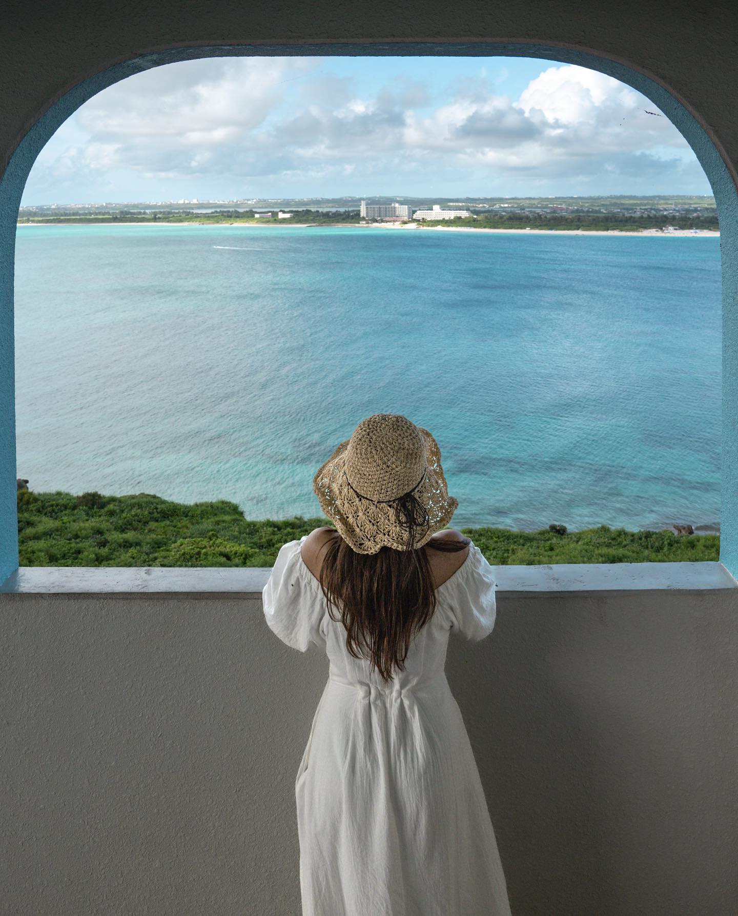 宮古島の景色にはワンピースが合いますが、風が吹きやすい場所もあるので、岬や橋周辺に行く日はペチコートや羽織りを使いましょう。