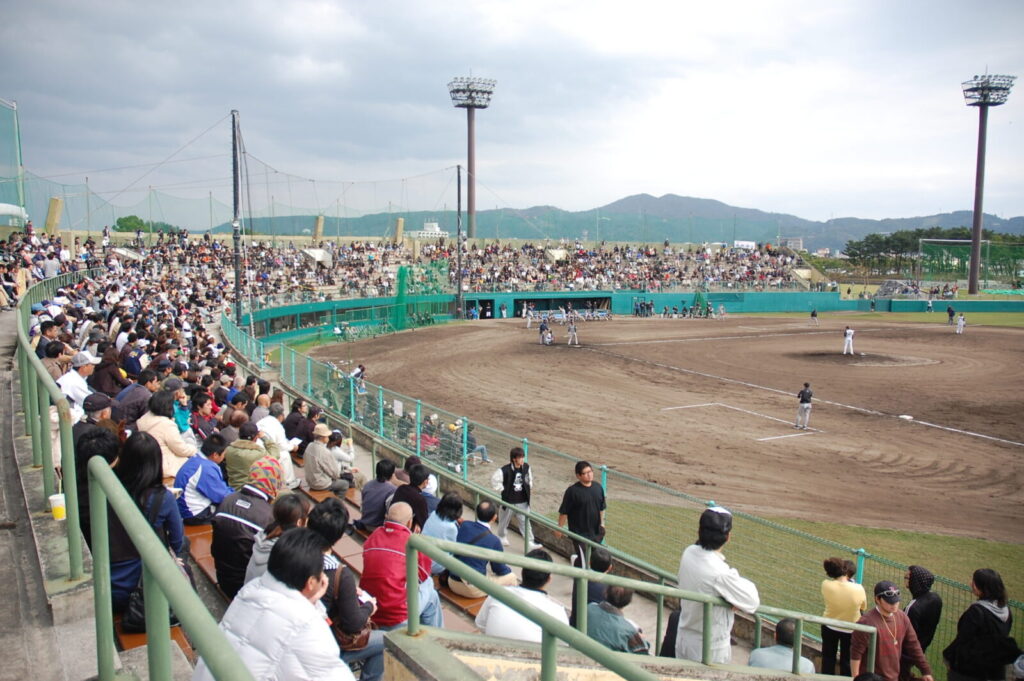 内野スタンド固定席15,000席、外野スタンド約5,000人が収容できる大きなスタジアムですが、駐車場はないので、公共交通機関の利用がおすすめです。