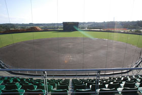 2011年に完成した天然芝の野球場には、バックネット裏周辺に屋根があり、中段以降は雨や日差しを避けて観戦できます。