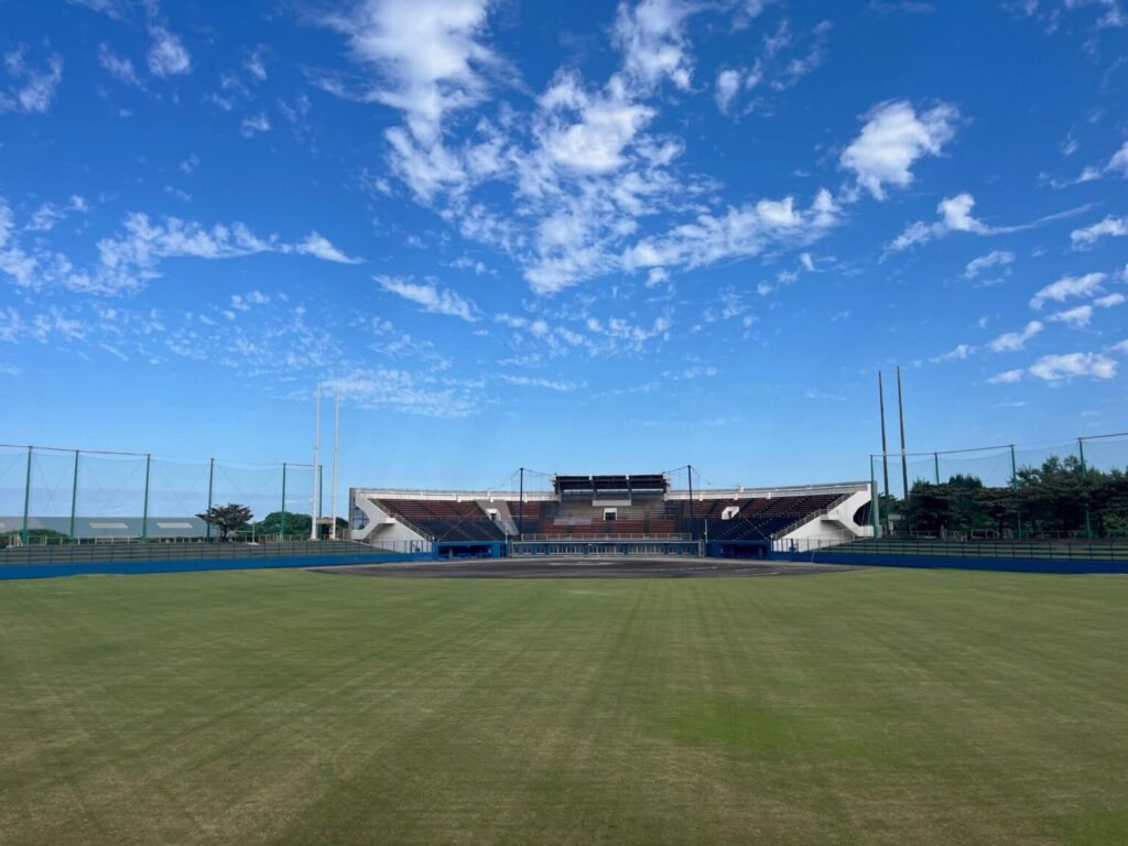 海に近く開放感のある球場で、観客との距離が近く、選手の表情や細かい動きまで観察しやすいのが魅力。投手練習をブルペン横から見学できるスポットもあり、フォームの違いなどを間近に感じられます。
