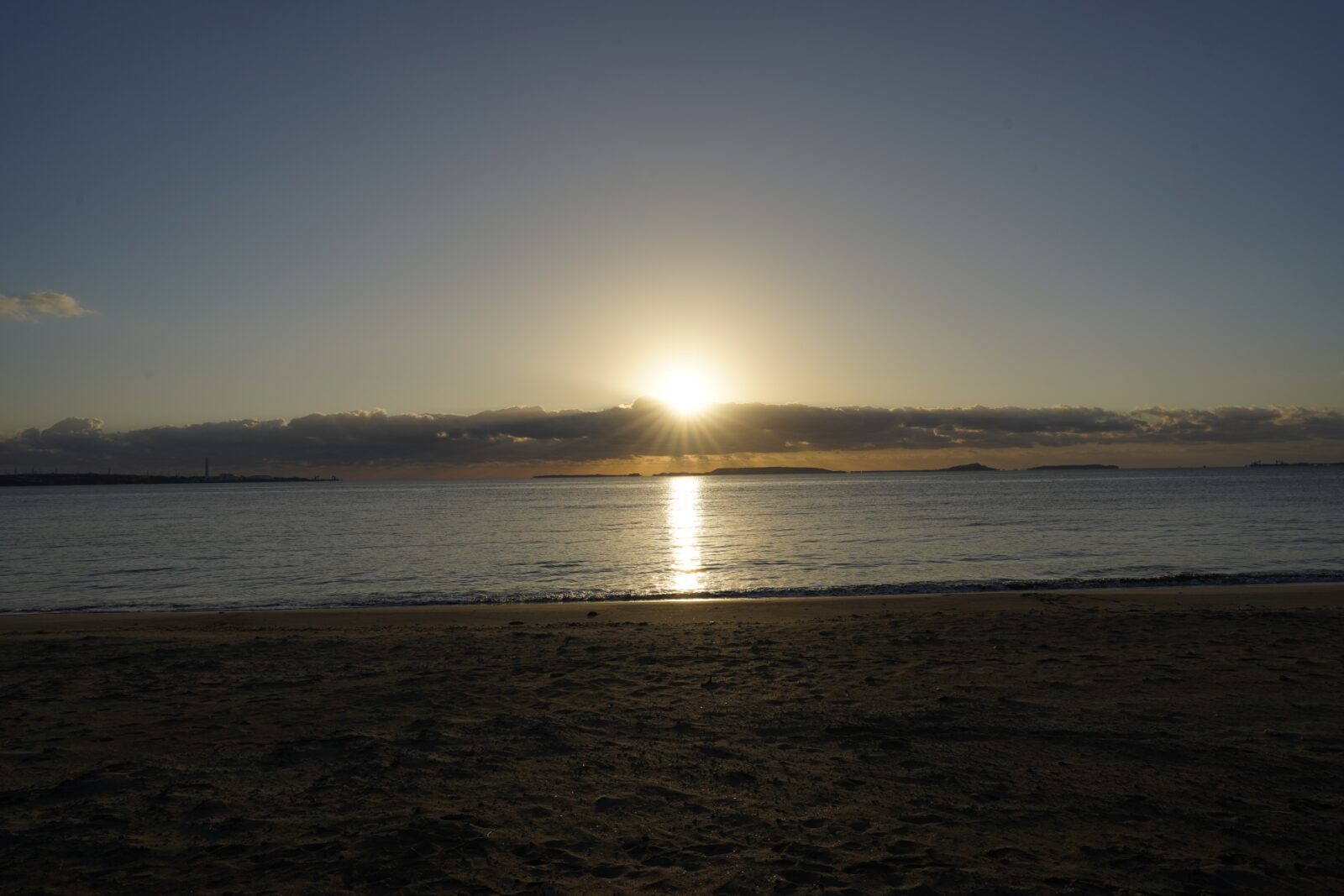 あざまサンサンビーチは、砂浜から直接見る初日の出が魅力。視界を遮るものがないため、写真も撮りやすく人気のスポットです。
