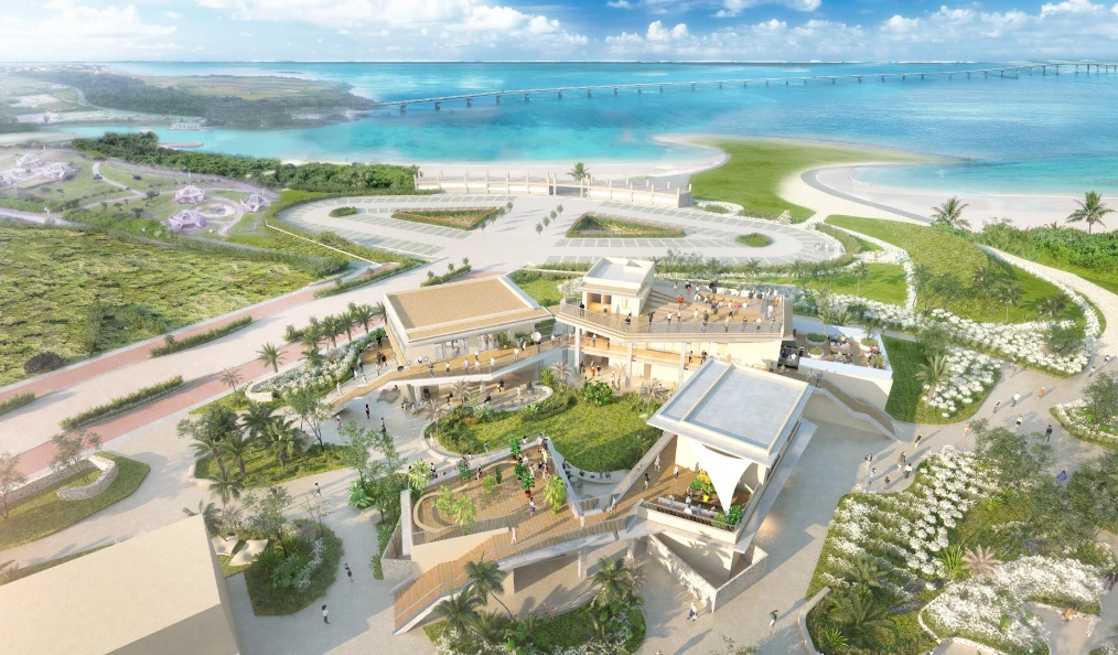 Yard miyakojimaは、宮古島のトゥリバー地区に新しく整備される複合施設です。建物は地上2階建てで、全8店舗のショップとレストランが集結。さらに、屋上サンセットテラスも整備されています。
